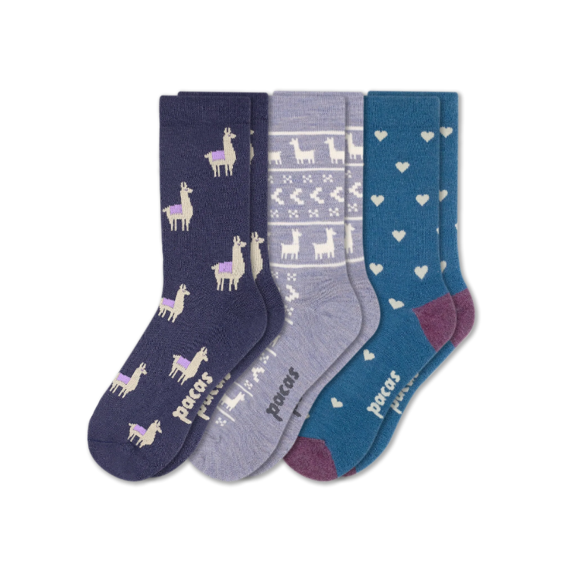RIB/Crocus & ALLOVER ALPACAS/Marine & HEARTS/Harbor Blue