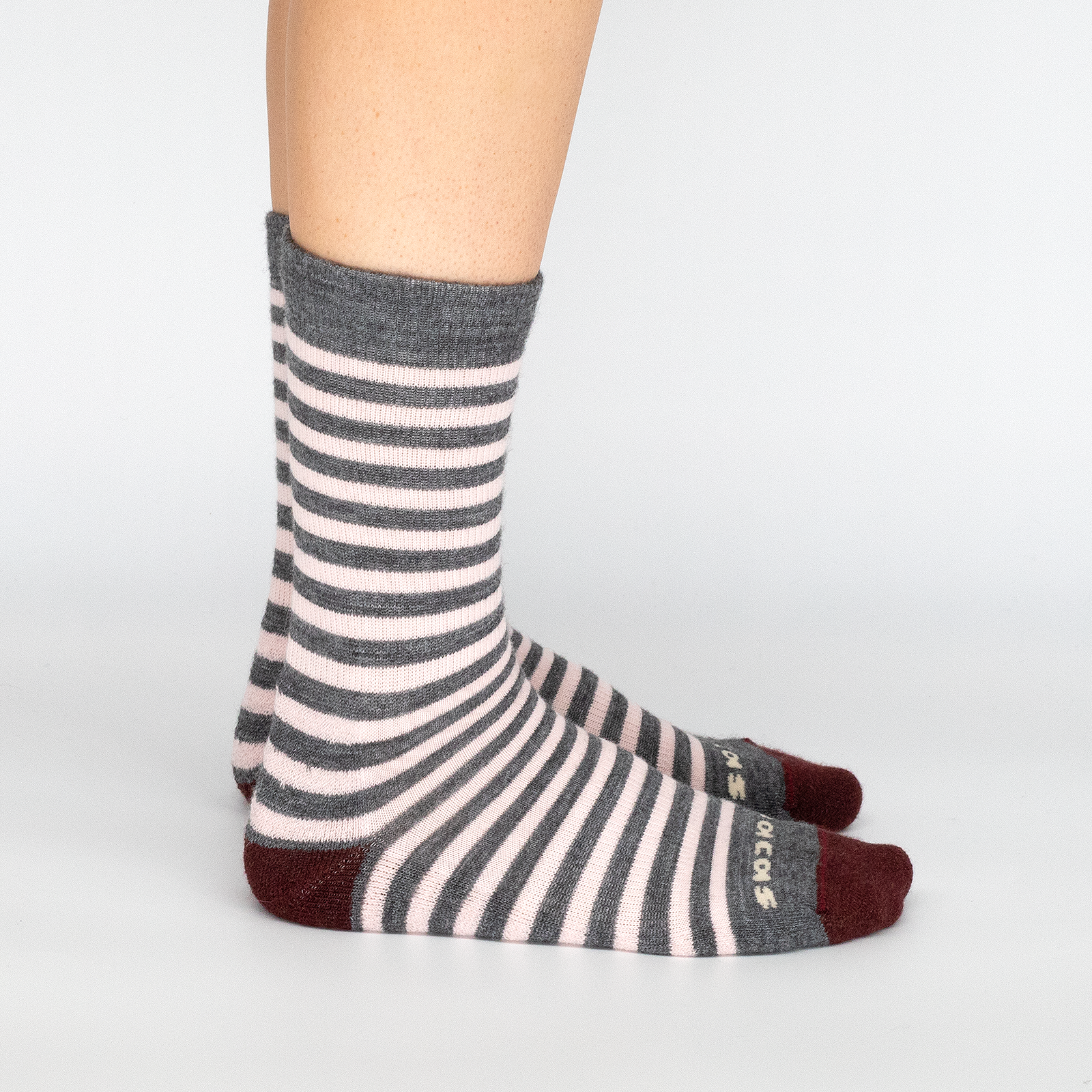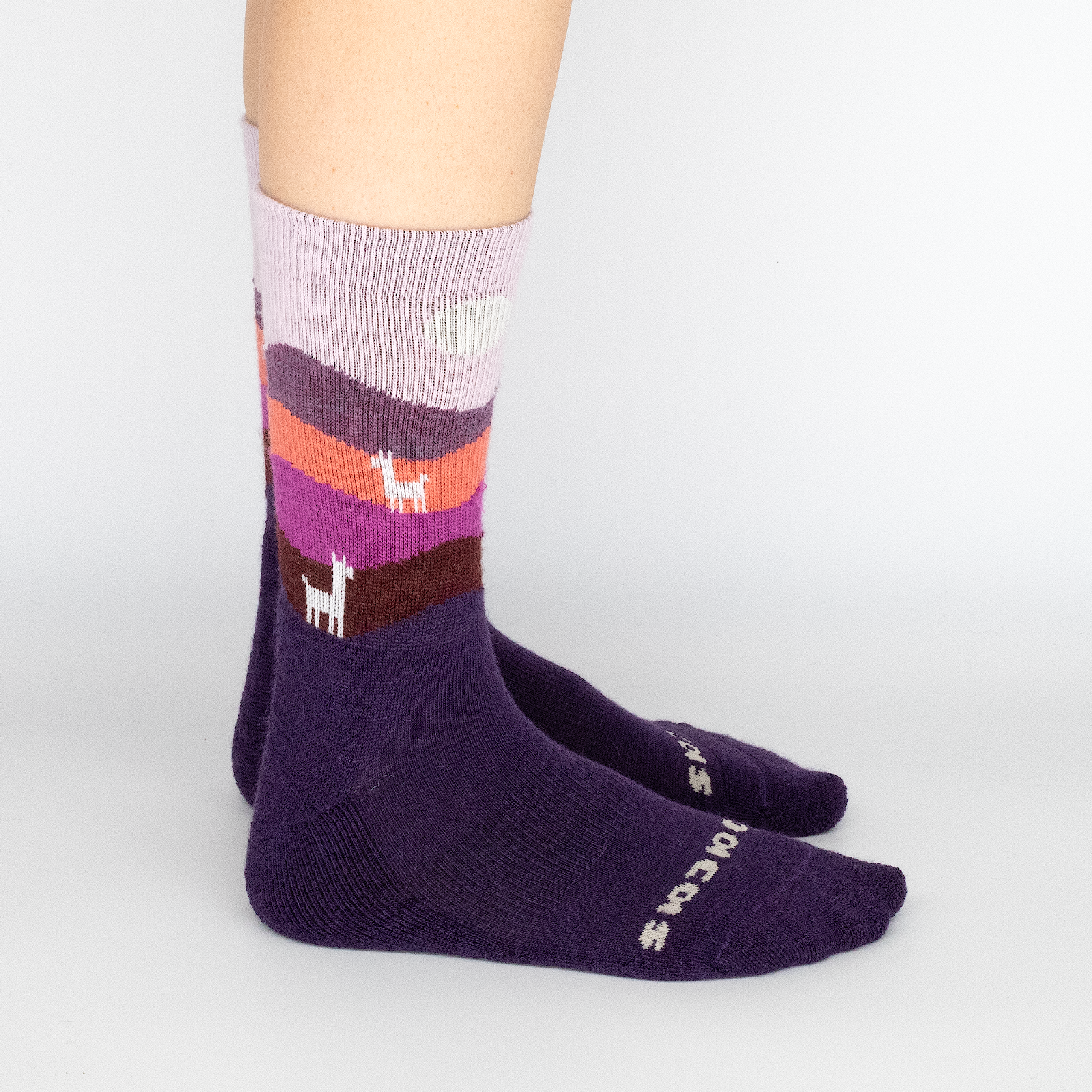 Our best-seller, these super soft and durable crew socks are knit with alpaca fiber, which is naturally thermoregulating, moisture wicking and odor resistant. A seamless toe and cushioned sole provide added comfort to any activity or season.
