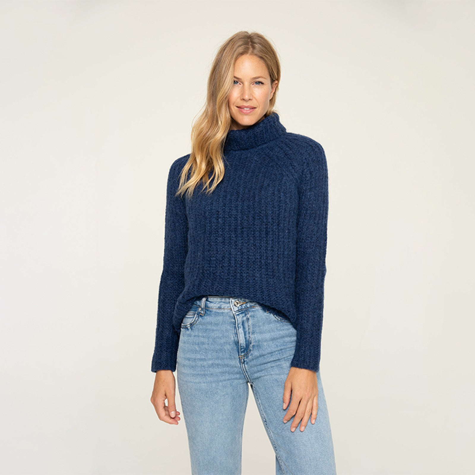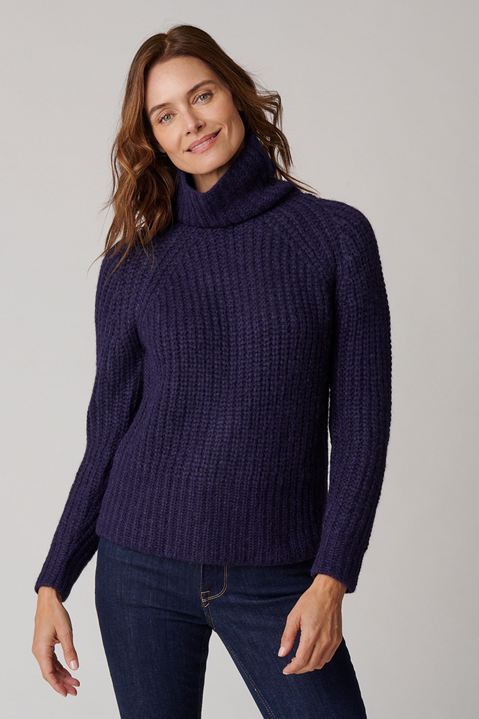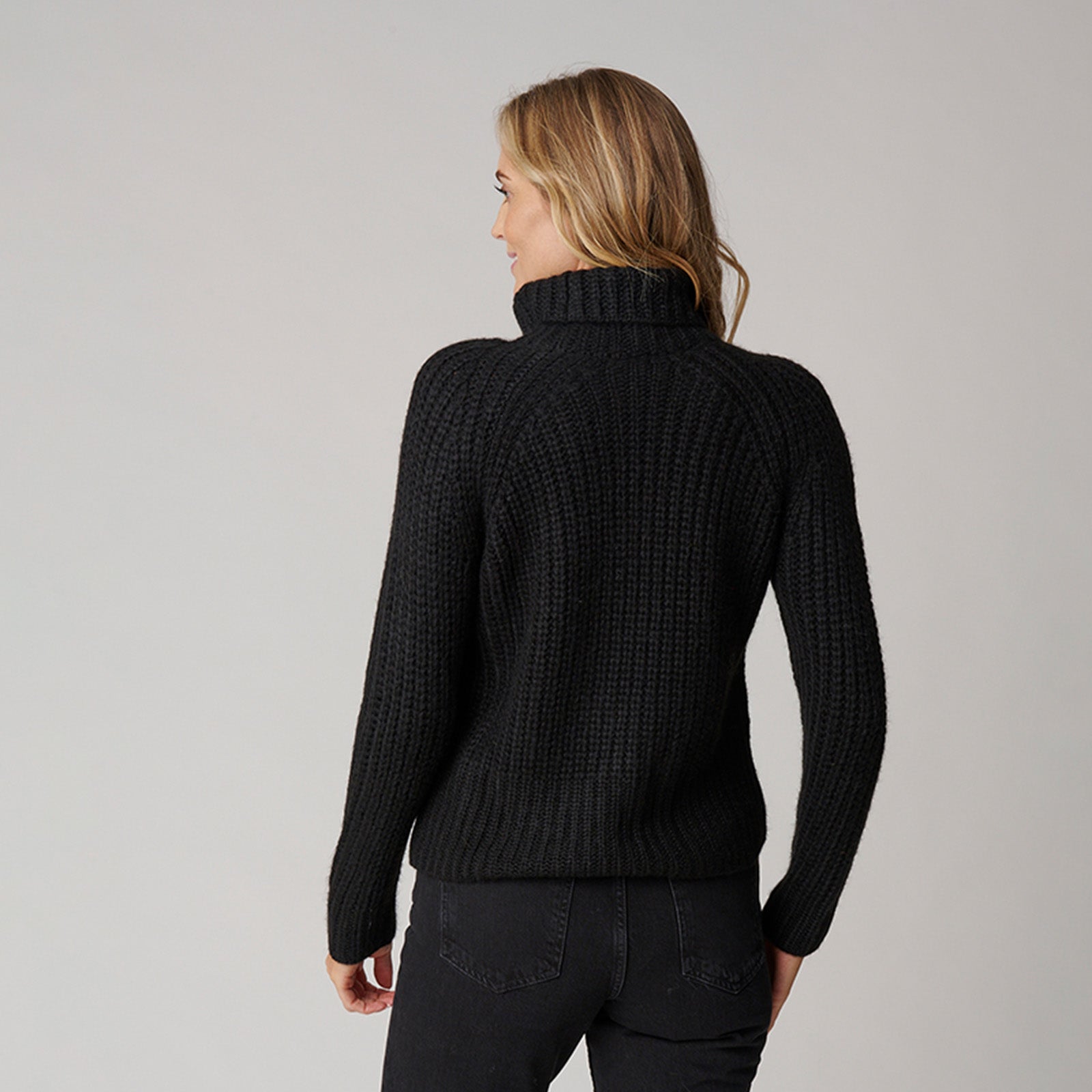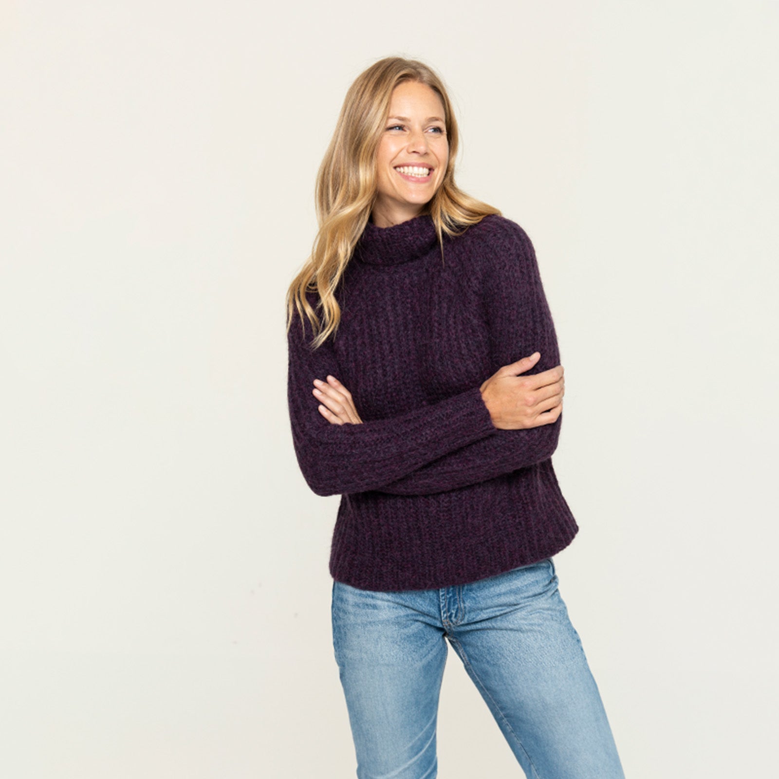 The women’s turtleneck is a chunky, luxurious sweater made of buttery soft alpaca wool. The neck can be folded over for a classic look or worn as a funnel neck. It is warm and fuzzy and can easily pair with your favorite jeans or a pencil skirt for work. The sweater feels like a hug and you will be reaching for it all winter long!