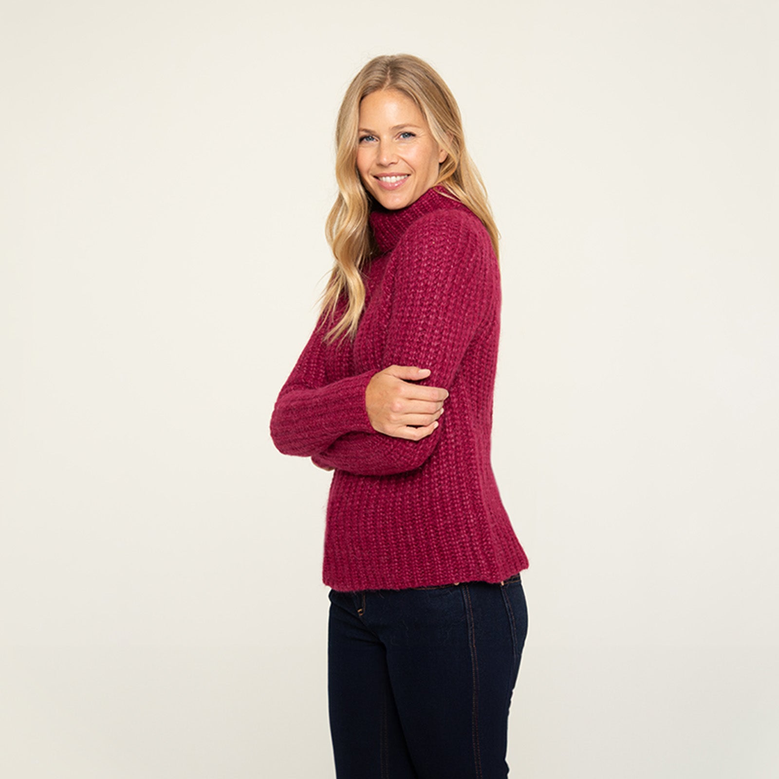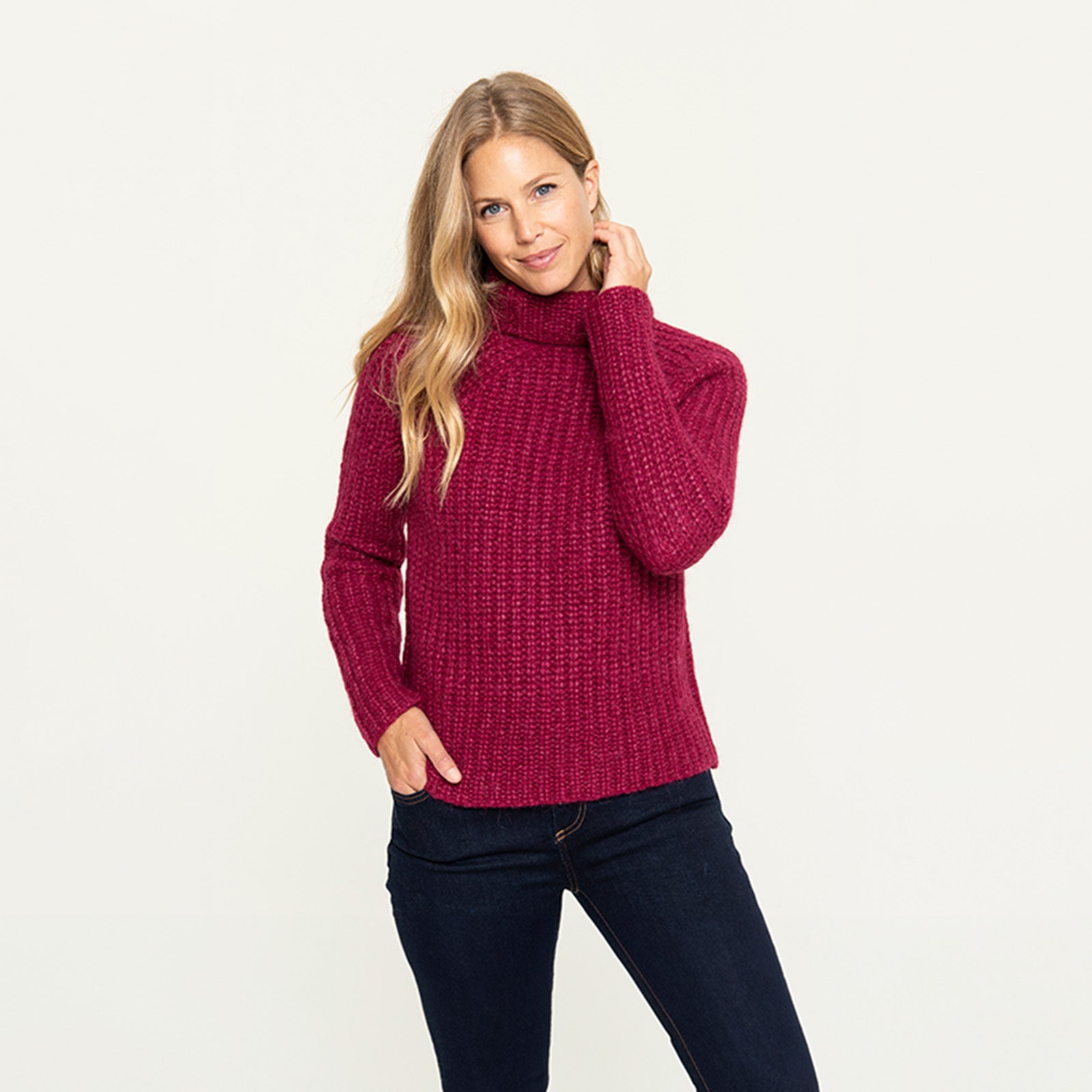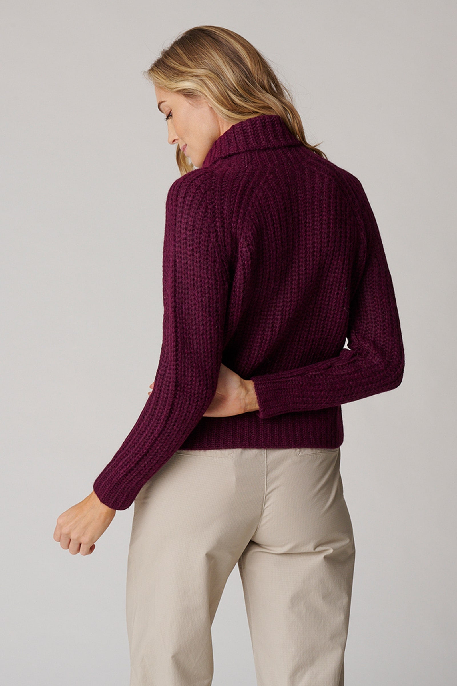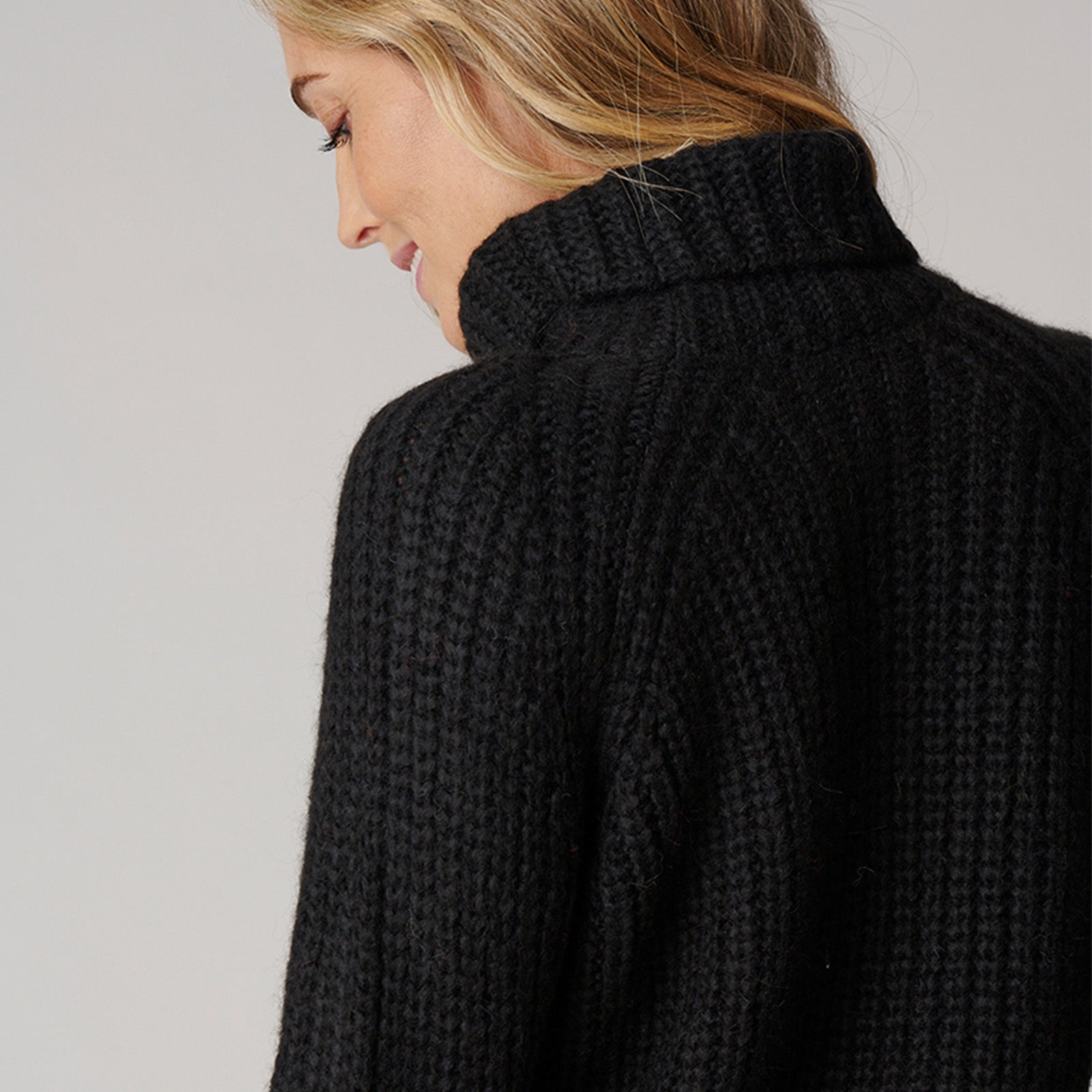 The women’s turtleneck is a chunky, luxurious sweater made of buttery soft alpaca wool. The neck can be folded over for a classic look or worn as a funnel neck. It is warm and fuzzy and can easily pair with your favorite jeans or a pencil skirt for work. The sweater feels like a hug and you will be reaching for it all winter long!