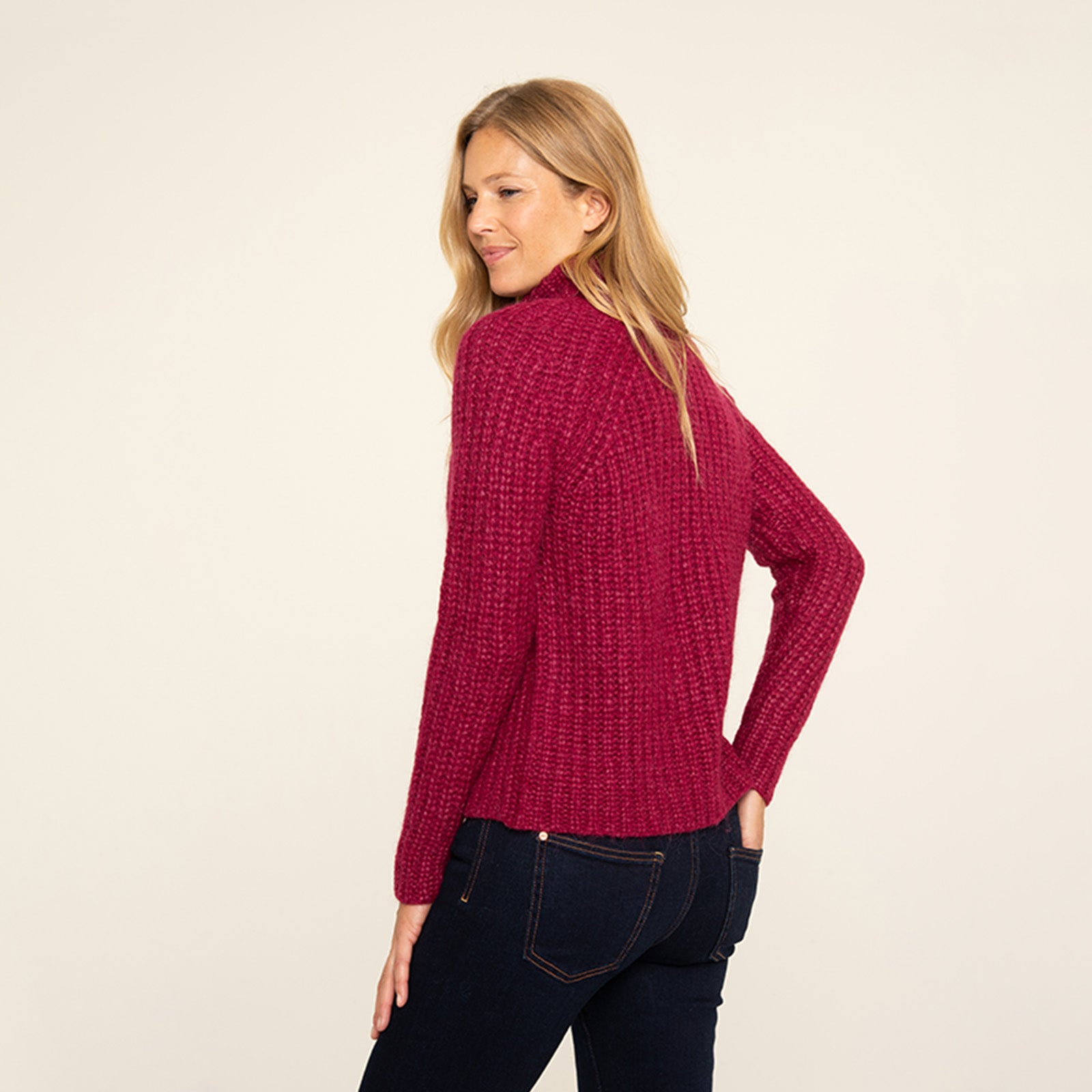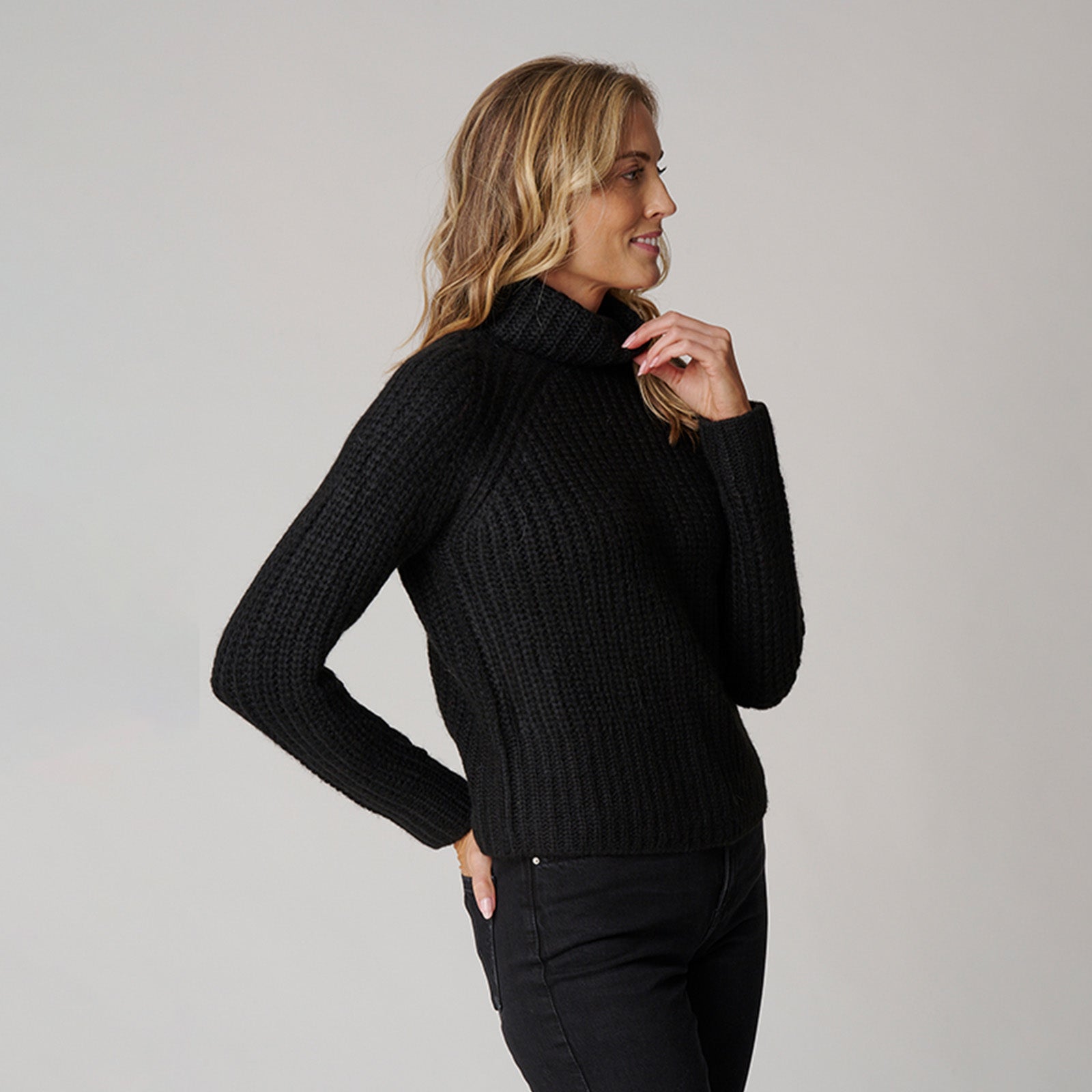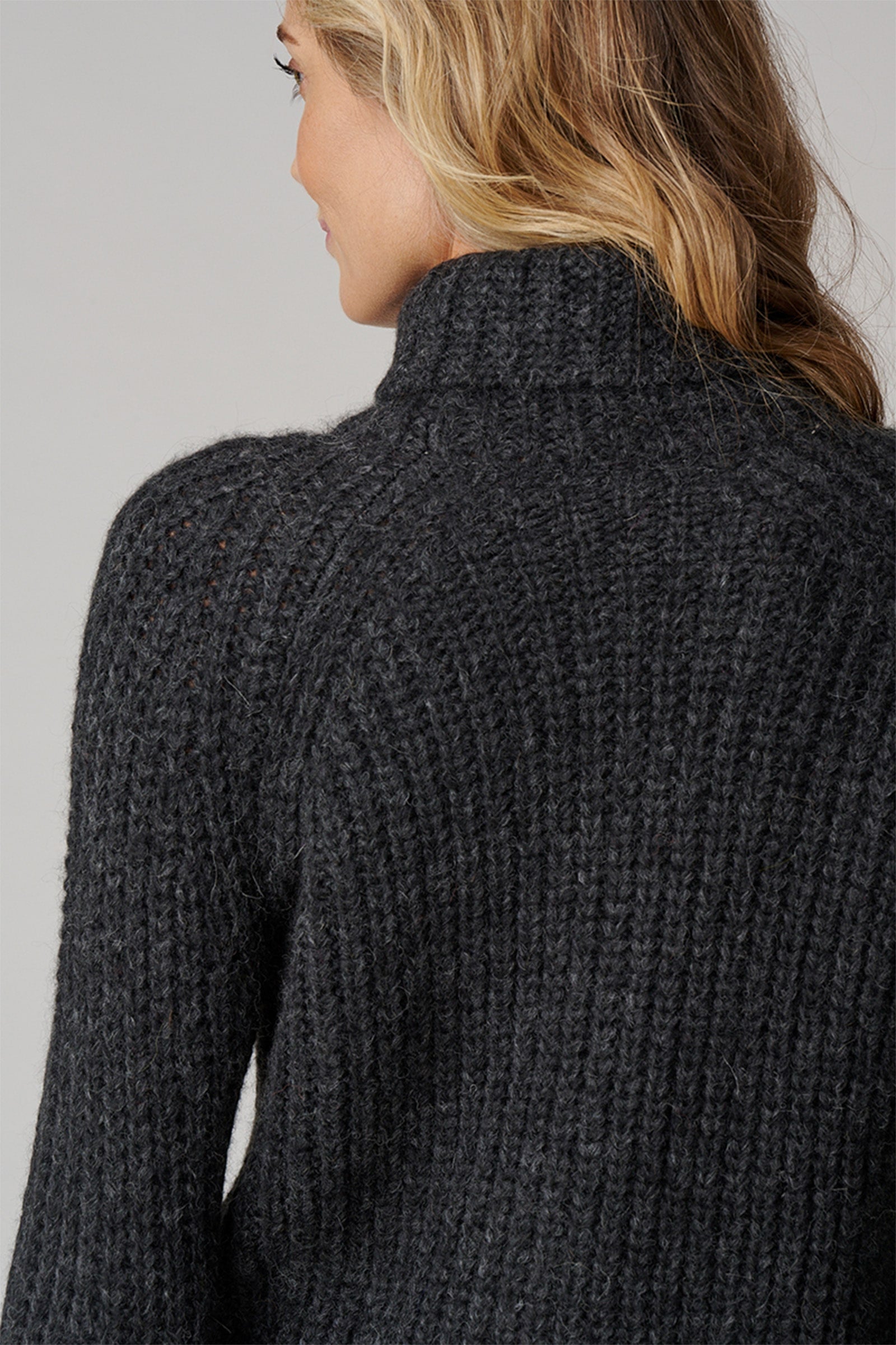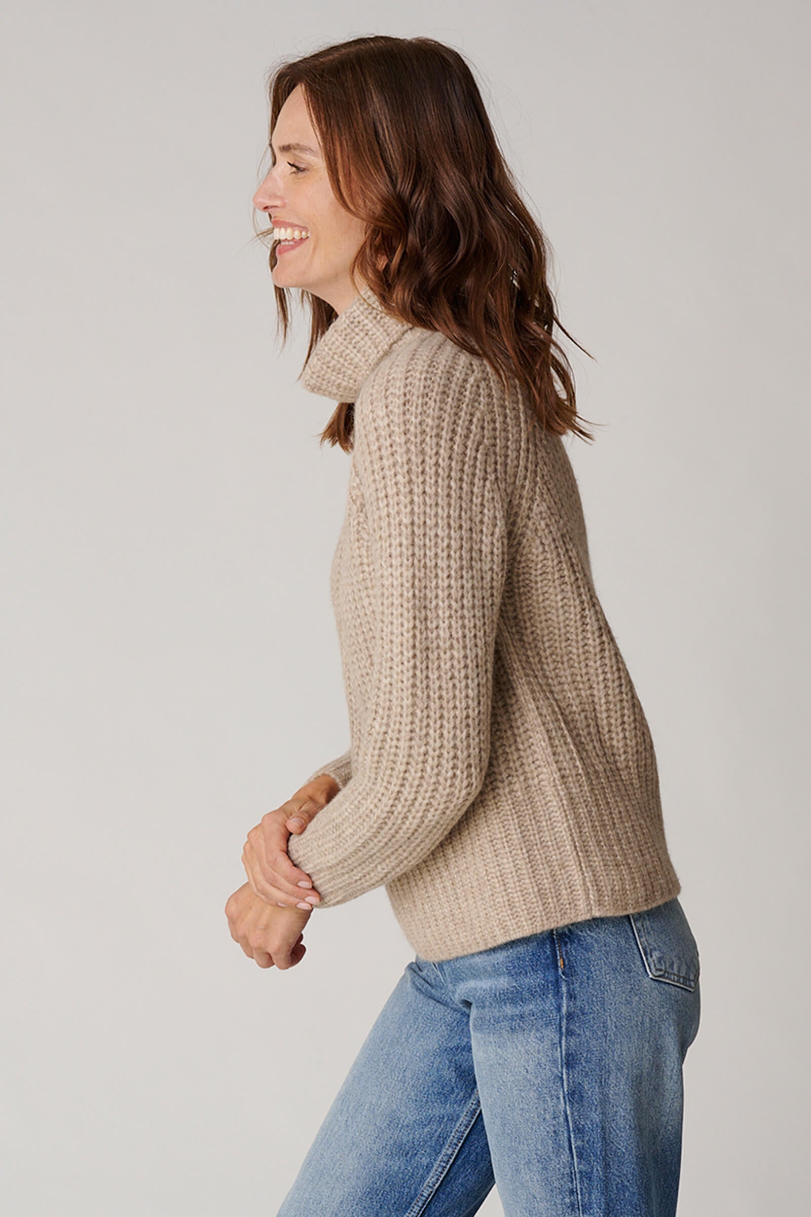 The women’s turtleneck is a chunky, luxurious sweater made of buttery soft alpaca wool. The neck can be folded over for a classic look or worn as a funnel neck. It is warm and fuzzy and can easily pair with your favorite jeans or a pencil skirt for work. The sweater feels like a hug and you will be reaching for it all winter long!