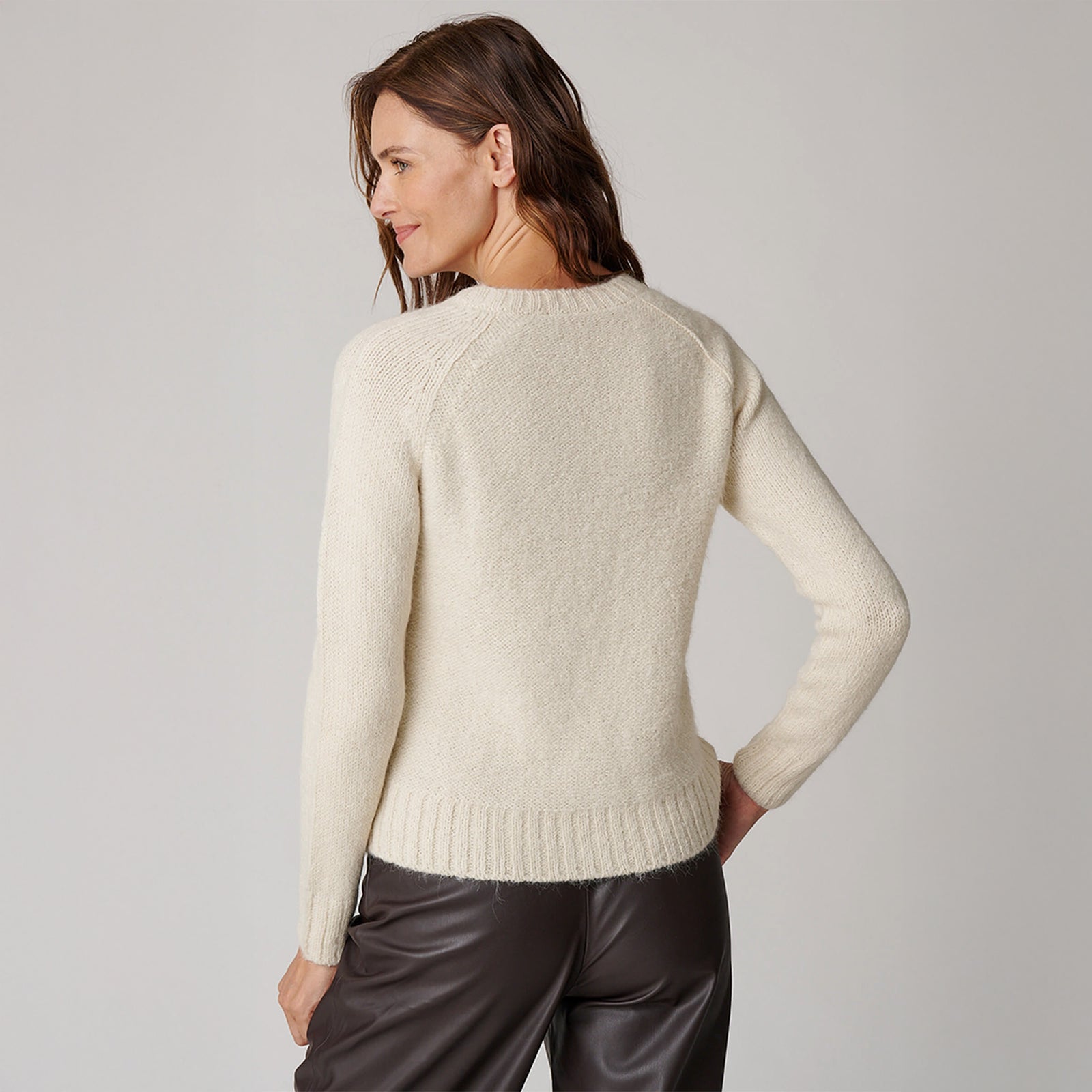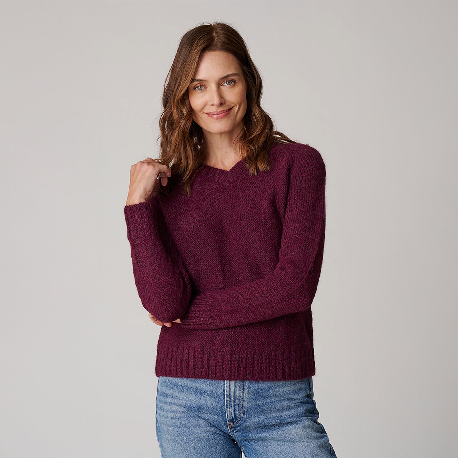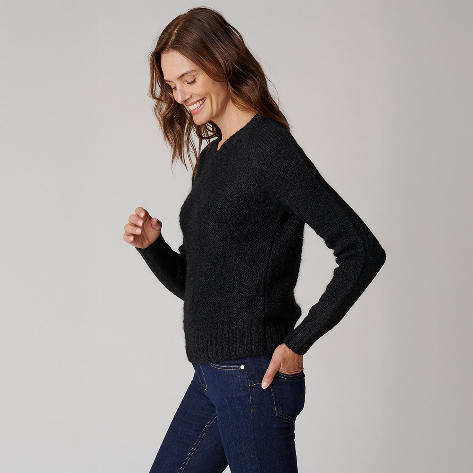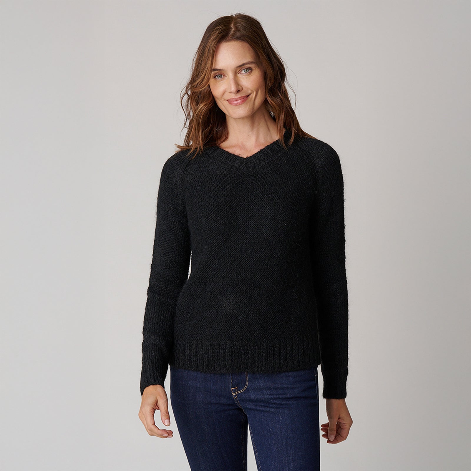 The women’s V neck is an easy, relaxed sweater that looks great paired with denim or a silk trouser. The V neck makes it a flattering fit for all body types. The sweater is soft and cozy and will undoubtedly become one of the go-to pieces in your closet.